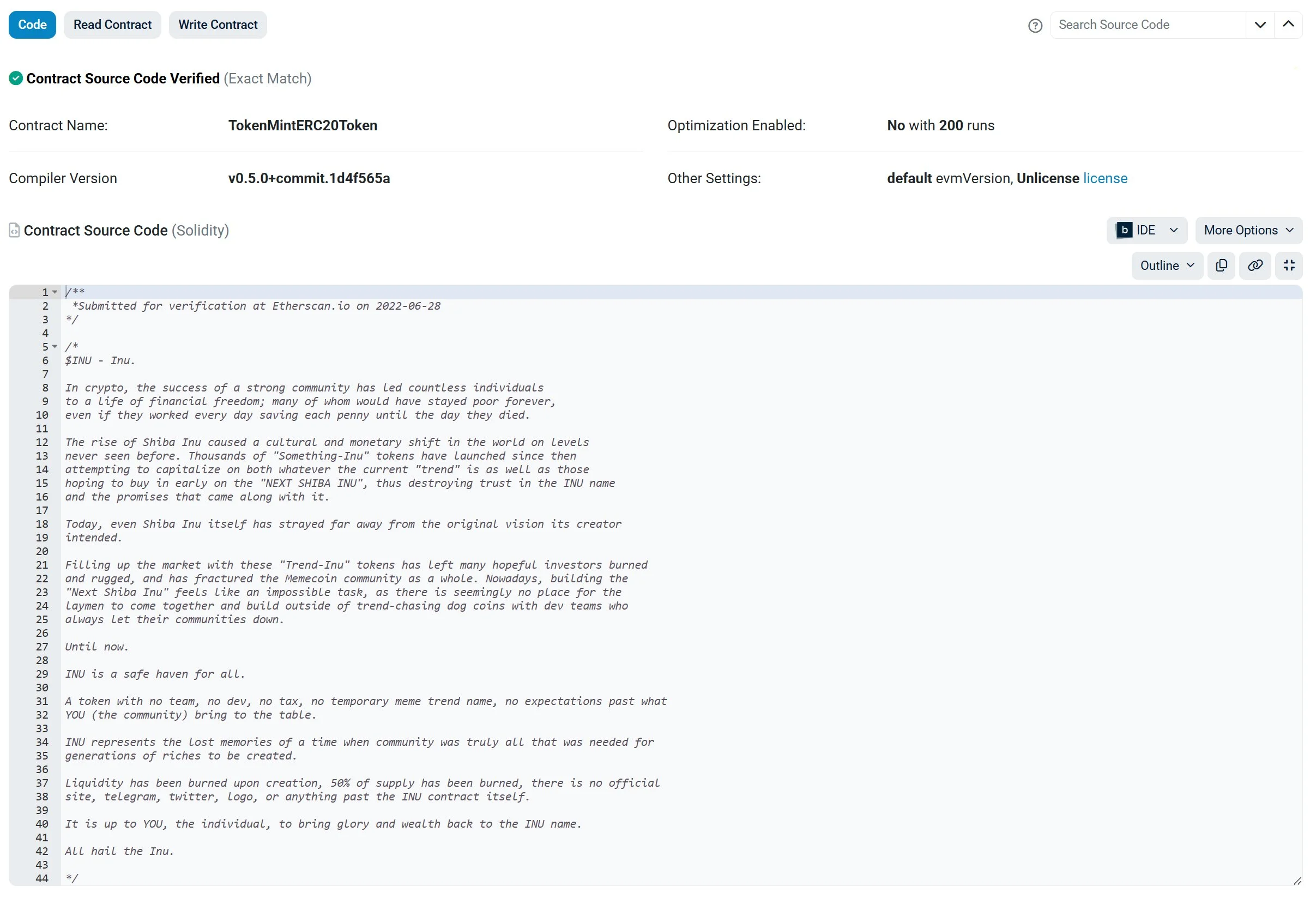 What makes INU unique is its community narrative, which is forever embedded into the code of its contract,